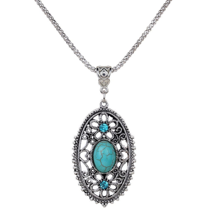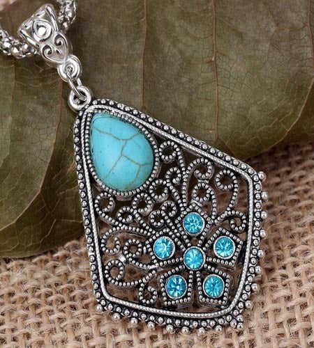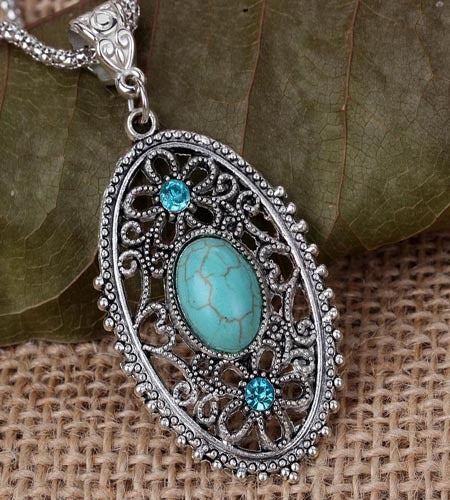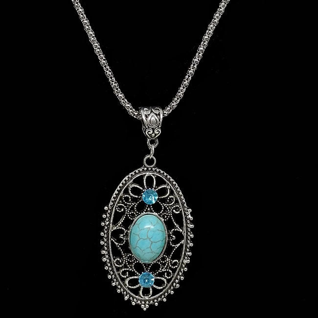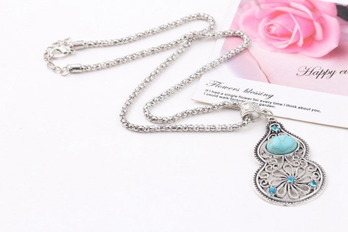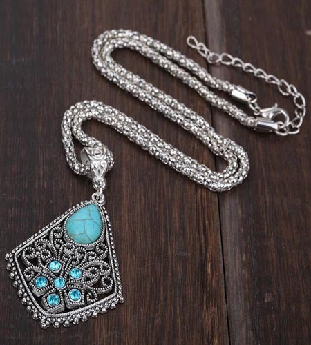 betan Silver Owl Pendant Necklace Natural Stone Long Necklace Sweater Chain Chunky Chains Statement Necklace Jewelry